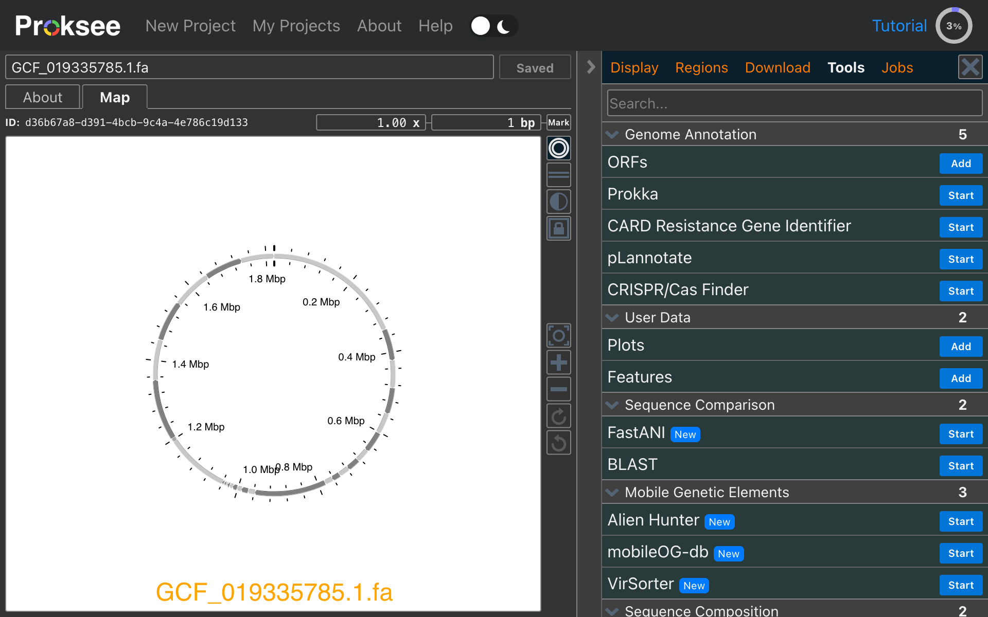 - In the Sidebar Tools panel, find the Prokka tool and click Start.